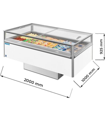 Isola panoramica ventilata con sbrinamento automatico e luce a led temp da -18°C a +5°C capacità 360 lt