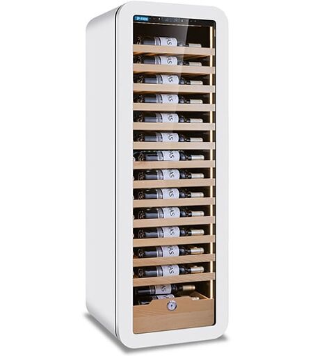 Cantina vini premium White per 90 bottiglie mono temperatura a refrigerazione ventilata ripiani in legno