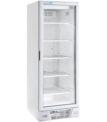 Vetrina espositiva bianca statica con agitatore con anta vetro e 5 ripiani temp da -18°C a -24°C capacità 360 lt