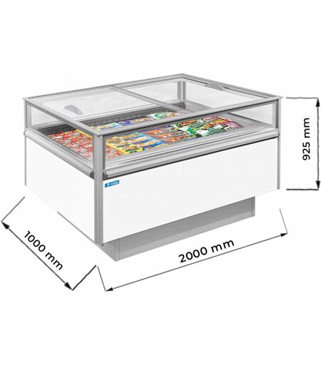 Isola panoramica ventilata con sbrinamento automatico e luce a led temp da -18°C a +5°C capacità 270 lt
