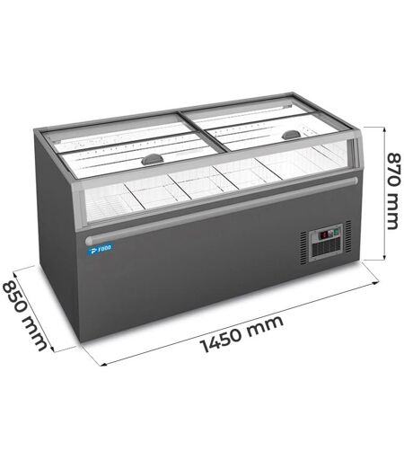 Isola supermercato panoramica statica con sbrinamento automatico e temp da +10°C a -22°C capacità 575 lt