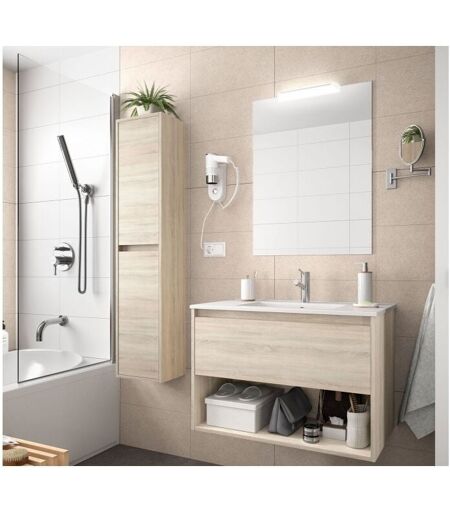 CAESAROO - Mobile bagno sospeso 80 cm 1 cassetto e 1 vano in legno rovere caledonia con lavabo a incasso - Nova - 80 cm Standard