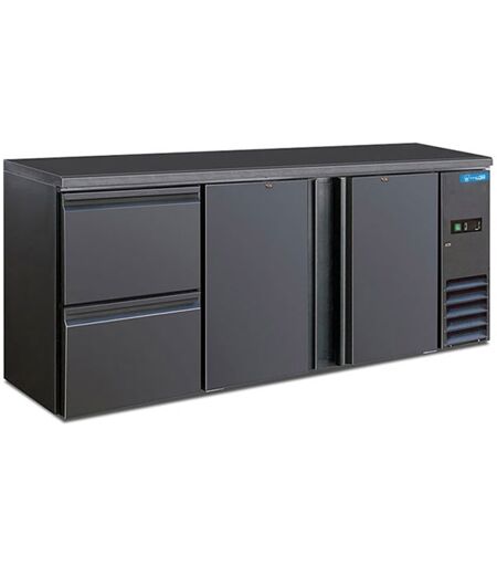 Tavolo refrigerato nero da incasso con n° 2 porte e n°2 cassetti temp. da 0°C a +10°C prof. 50 cm