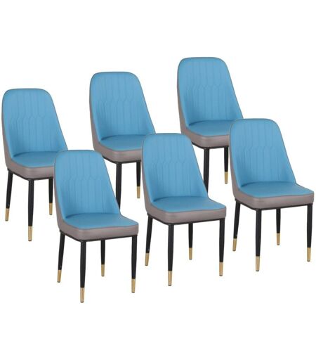 COMPRALO NEW Set da 6 Sedie Cucina Multicolore Ecopelle Piedi Dorati Vienna Blu