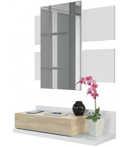 ABITARE Mobile da ingresso sospeso 75x29x20 cm bianco opaco e rovere canadese con specchio e cassetto - Bari