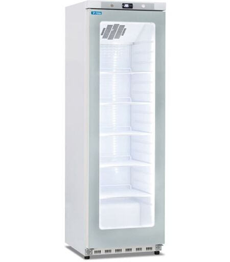 Vetrina espositiva bianca con agitatore con anta in vetro da +2°C a +10°C capacità 400 lt