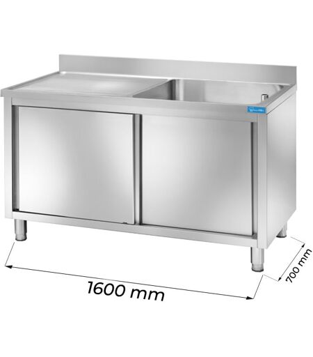 Lavello armadiato in acciaio inox con 1 vasca e gocciolatoio a sinistra L1600xP700xH850 mm linea premium