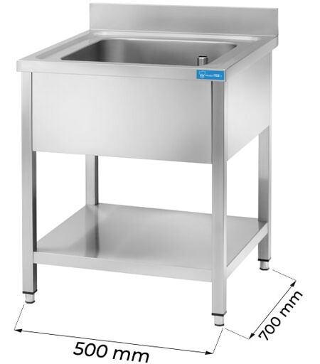Lavello aperto in acciaio inox con 1 vasca L500xP700xH850 mm linea premium