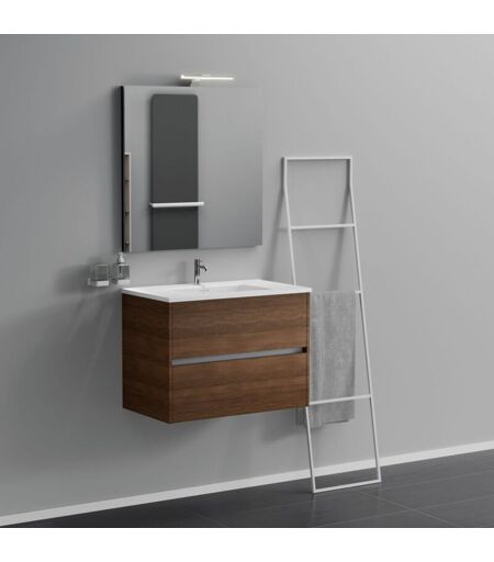 INDA - Mobile bagno 2 cassetti L.80 con lavabo specchio e lampada