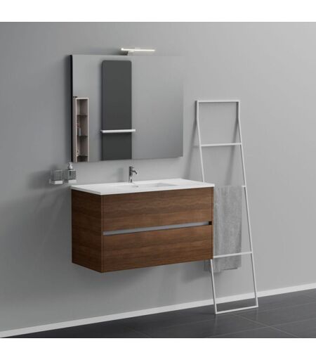 INDA - Mobile bagno 2 cassetti L.100 con lavabo specchio e