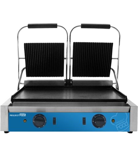 Piastra panini doppia con piano cottura in ghisa sotto liscio sopra rigato potenza 3600 watt