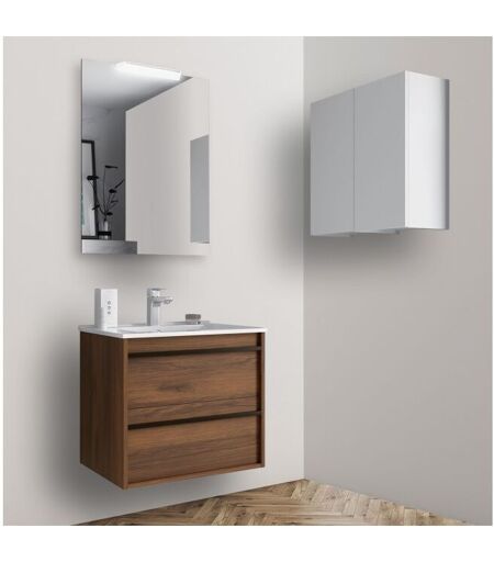 ASTORIA Mobile bagno sospeso 60 cm 2 cassetti in legno noce maya con lavabo a incasso - - 60 cm Standard