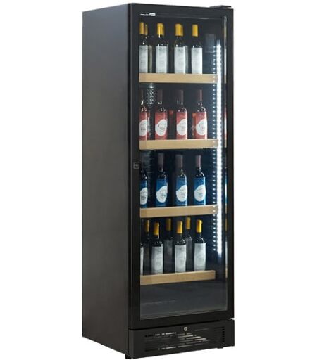 Cantina vino con refrigerazione statica con ventola agitatore – Capacità 126 Bottiglie Progettata per garantire conservazione ottimale e design raffinato, la Cantina vino è ideale per ristoranti, enoteche e appassionati del buon vino che desiderano mantenere le proprie bottiglie nelle migliori condizioni di degustazione. Grazie al suo sistema di refrigerazione statica con ventola di assistenza, offre una gestione precisa della temperatura, adattandosi alle diverse esigenze di conservazione. Caratteristiche principali: Struttura lamiera preverniciata nera, elegante e resistente. Interno in ABS nero, per un design sofisticato e una facile pulizia. Porta battente con maniglia integrata e chiusura a chiave Illuminazione LED interna con una striscia LED verticale, per valorizzare al meglio le bottiglie esposte. Efficienza silenziosa: Con un livello di rumorosità di soli 55 dB, si integra perfettamente in ogni ambiente senza disturbare. Prestazioni elevate: Sistema di refrigerazione statica con agitatore: assicura una distribuzione uniforme del freddo all’interno della vetrina. Temperatura r egolabile da 0°C a +10°C, per adattarsi perfettamente a ogni tipo di vino. Gestione precisa tramite termostato meccanico e monitoraggio con termometro analogico. Evaporazione automatica della condensa, per un funzionamento senza manutenzione aggiuntiva. Gas refrigerante R600a, ecologico ed efficiente, per prestazioni di raffreddamento ottimali nel rispetto dell’ambiente. Dotazione inclusa: N°3 griglie (516×390 mm) + N°1 griglia (516×205 mm) Rivestimento frontale in legno Chiusura con chiave, per protezione e sicurezza. Illuminazione LED, per una presentazione elegante del vino. La Cantina vino con refrigerazione statica con agitatore combina funzionalità, estetica e tecnologia avanzata, offrendo una soluzione ideale per conservare al meglio le tue bottiglie, mantenendole sempre alla temperatura perfetta. ?✨ ...