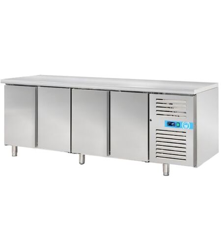 Tavolo refrigerato premium con n° 4 porte senza alzatina temp. da -2°C a +8°C prof. 60 cm classe D