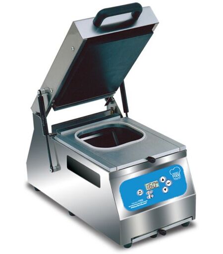 Sigillatrice a vaschetta in acciaio inox, Dimensione max 265x196 mm Le Termosigillatrici per vaschette “ semi-automatiche ” sono ideali per tenere confezionati gli alimenti mantenendo inalterata la fragranza e il gusto. Il macchinario è realizzato in acciaio inox garantendo praticità e igiene nel utilizzo. Per comandare la sigillatrice si usa la centralina digitale posta sul frontale della macchina da dove si può comandare la temperatura di sigillatura. Sono apparecchiature in grado di sigillare qualsiasi formato di vaschetta e qualsiasi tipo di prodotto, dal solido al liquido, in brevissimo tempo. DIMENSIONI STAMPI ACQUISTABILI SINGOLARAMENTE : 193x138 mm 138x96 mm 180x180 mm 195x260 mm ...