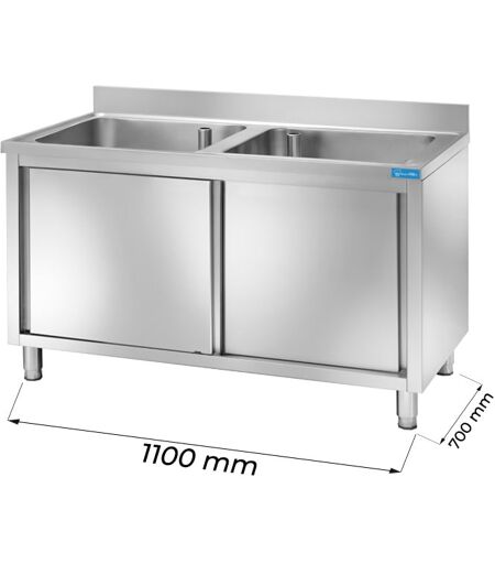 Lavello armadiato in acciaio inox con 2 vasche L1100xP700xH850 mm linea premium