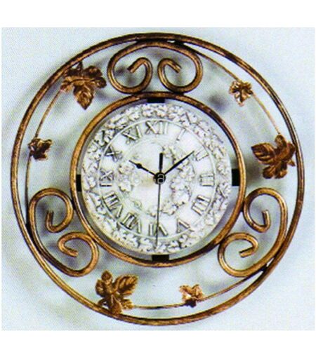 SPAZIO CASA - Orologio da parete tondo decorato con edera in ferro battuto e ceramica Colori Ferro: Bianco oro - Dimensioni orologi: ø 36