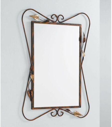 SPAZIO CASA - Specchio da Parete con Cornice in Ferro Battuto Modello Foglie Colori Ferro: Glicine