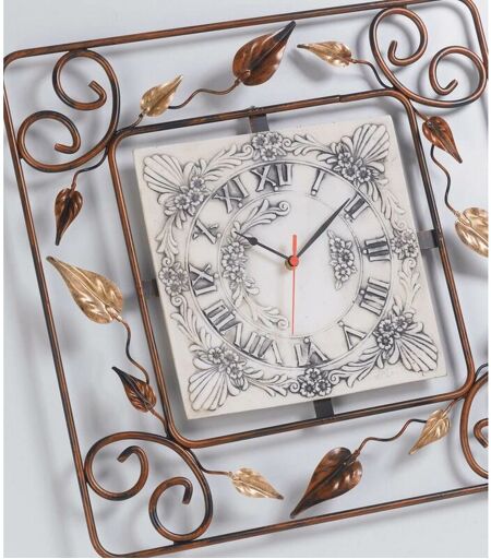 SPAZIO CASA Orologio quadrato in ferro battuto decorato con foglie Colori Ferro: Bianco opaco