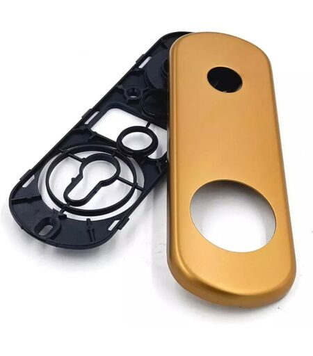 Placca DIERRE in Alluminio , finitura Bronzata , con foro mm.42 per applicazione Defender . Interasse foro maniglia - foro defender : mm.92 Misure : Altezza 179 mm Larghezza 61 mm Spessore 8 mm Colore : Bronzata ...