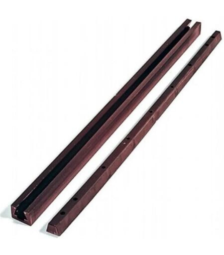 05.0076 Guida nylon per unione ripiani Guida in nylon a coda di rondine per unione ripiani. Larghezza: e 16 mm. Lunghezza : 500 mm Finitura: marrone. ...