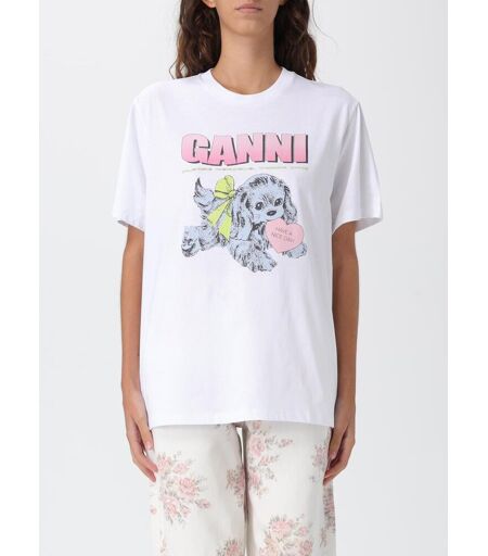 Ganni T-shirt in cotone con stampa Dog Bianco Taglia M