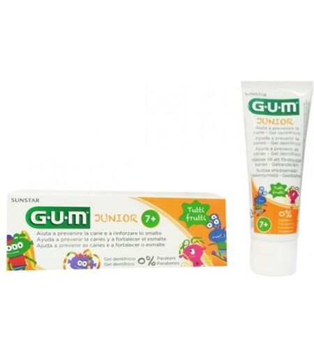Gum Junior Dentifricio 7+ 50ml - DESCRIZIONE PRODOTTO: - Il Gum Junior Dentifricio 7+ 50ml è il compagno ideale per l'igiene orale dei bambini dai 7 anni in su. La sua formula appositamente sviluppata offre una protezione avanzata contro la formazione di placca e carie, aiutando a mantenere il sorr… ...