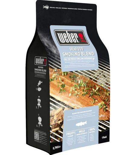 I chip per affumicatura Seafood Weber rendono l`affumicatura del pesce e dei frutti di mare molto semplice. Questa miscela di chip per affumicatura fatta di legni di latifoglie e legni di albero da frutta accuratamente selezionati è perfetta per esempio per il salmone, lo sgombro o i gamberi. Produce un aroma fruttato con una intensità di fumo leggera. La confezione contiene 700 g. ...