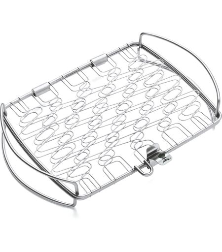Per arrostire il pesce o la carne a fuoco vivo sul tuo barbecue o abbrustolire zucchine e peperoni ciò che ti serve è una pratica graticola in acciaio inox. Questo modello dalle piccole dimensioni è dotato di aggancio di sicurezza che permette di cucinare e ruotare il pesce sul barbecue conferendo una cottura uniforme ed evitando che cada di lato o attacchi alla griglia di cottura. L’esclusivo design a filo metallico consente di cuocere anche alimenti di diverse dimensioni e forma e potrai utilizzarla ad esempio anche per abbrustolire e cuocere la polenta. Utilizzabile su tutti i barbecue a gas e carbone, compatibilmente con le dimensioni della superfice di cottura. Lavabile in lavastoviglie. Dimensioni: 28x21 cm. ...
