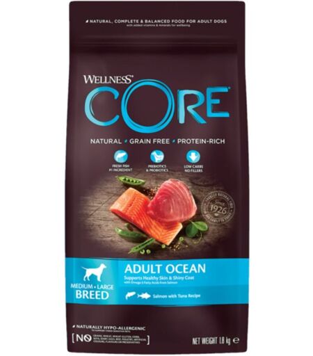 Wellness® Core Wellness Core Medium/Large Breed Adult Ocean Salmone e Tonno per Cani Adulti 1,8 Kg