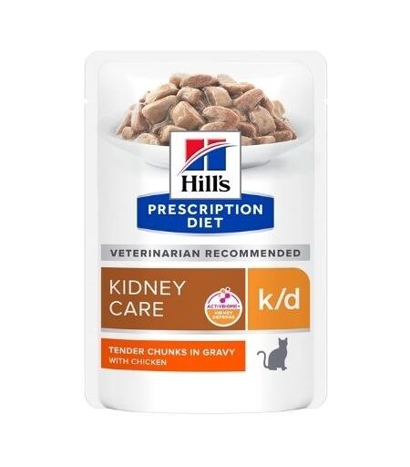 Alimento per gatti adulti: Ideale per gatti adulti, Hill's Prescription Diet k/d Kidney Care Bocconcini con Pollo è un alimento dietetico completo per supportare la salute renale. Supporto renale: Progettato per gestire l'insufficienza renale, con un basso contenuto di fosforo e proteine di alta qualità. ActivBiome+ Kidney Defense: Include prebiotici per nutrire il microbioma intestinale e sostenere la funzione renale. Gusto irresistibile: Realizzato con pollo tenero, offre un sapore delizioso che i gatti adoreranno. S+OXSHIELD: Favorisce un ambiente urinario che riduce il rischio di cristalli di struvite e ossalato di calcio. ...