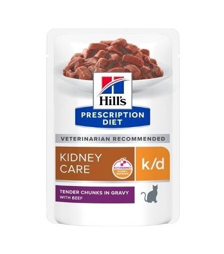 Alimento per gatti adulti: Ideale per gatti adulti, Hill's Prescription Diet k/d Kidney Care Bocconcini con Manzo è un alimento dietetico completo per supportare la salute renale. Supporto renale: Progettato per gestire l'insufficienza renale, con un basso contenuto di fosforo e proteine di alta qualità. ActivBiome+ Kidney Defense: Include prebiotici per nutrire il microbioma intestinale e sostenere la funzione renale. Gusto irresistibile: Realizzato con Manzo tenero, offre un sapore delizioso che i gatti adoreranno. S+OXSHIELD: Favorisce un ambiente urinario che riduce il rischio di cristalli di struvite e ossalato di calcio. ...