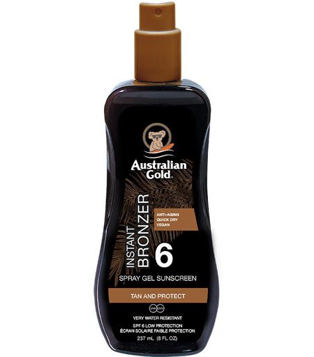 Australian Gold Sunscreen SPF6 spray gel with instant bronzer 237 ml