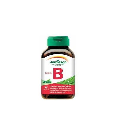 Jamieson Complesso B Integratore 60 Compresse JamiesonComplesso B Integratore alimentare di vitamine del complesso B, che agiscono principalmente da coenzimi in svariate reazioni del metabolismo di carboidrati, lipidi e proteine. L'acido folico, la vitamina B12 e la vitamina B6 sono necessari per ridurre i livelli di omocisteina nel sangue, un fattore di rischio per le malattie cardiovascolari. Non contiene: glutine e lattosio. Ingredienti Tiamina mononitrato (vitamina B1); riboflavina (vitamina B2); nicotinamide (vitamina B3); calcio dpantotenato (vitamina B5); piridossina HCl (vitmina B6); biotina (vitamina B8); acido folico; vitamina B12; acido ascorbico (vitamina C); zinco gluconato; colina bitartrato; inositolo. Eccipienti: cellulosa microcristallina, sodio crosscarmellosio, magnesio stearato vegetale, aroma menta. Rivestimento: acqua depurata, ipromellosio, glicole polietilenico, cera montana. Modalità d'uso 1 compressa al giorno durante il pasto principale. Avvertenze Non superare la dose giornaliera raccomandata. Tenere fuori dalla portata dei bambini al di sotto dei 3 anni di età. Gli integratori non vanno intesi come sostituti di una dieta variata. Interazioni con farmaci Antibiotici, contraccettivi orali, salicilati, sulfonamidi, cortisone inducono deplezione dei livelli delle vitamine del gruppo B. Interazioni con altri nutrienti L'alcool, il caffè, lo zucchero, i coloranti per alimenti causano carenze vitaminiche del gruppo B. Tossicità - effetti collaterali Dosi molto elevate di vitamine del complesso B possono causare flatulenza, nausea, vomito, diarrea, dolore addominale o mal di testa. La Riboflavina può causare una colorazione giallo brillante delle urine, tuttavia questo effetto non è nocivo. Caratteristiche nutrizionali per 100 gper 1 compressa%RDA* Valore energetico147,1 kcal 625,1 kJ0,61 kcal 2,58 kJ Proteine0,24 g1 mg Carboidrati0,49 g2 mg Lipidi0,68 g2,8 mg Vitamina B10,51 g2,1 mg190,10 Vitamina B20,58 g2,4 mg171,40 Vitamina B36,55 g27 mg168,75 Vitamina B52,18 g9 mg150 Vitamina B60,73 g3 mg214,3 Vitamina B82,4 mg0,01 mg20 Acido folico0,05 g0,2 mg100 Vitamina B120,4 mg0,0015 mg60 Vitamina C43,69 g180 mg225 Zinco1,21 g5 mg50 Inositolo1,21 g5 mg Colina bitartrato1,21 g5 mg Formato Flacone da 60 compresse. Cod. 2235 ...