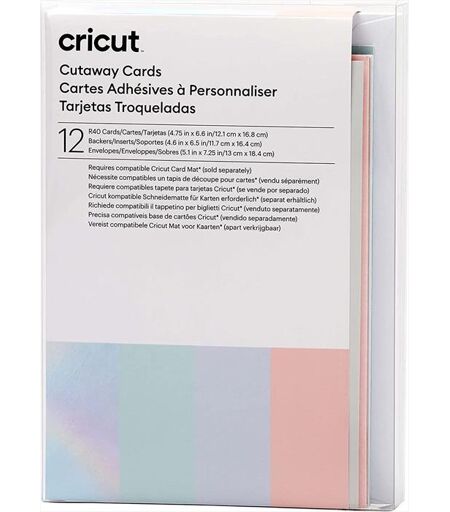 Cricut Chaway Cards, Pastello, da Utilizzare con Tappetino a Cartoncino, 2x2, 12.1 cm x 16.8 cm (Taglia R40), Confezione da 12, Pastello - 12 carte R40 con adesivo (4 tulipano, 4 polvere blu, 4 sussurranti blu); 12 sostenitori olografici opachi d'argento; 12 buste bianche Dimensioni: carte 12.1 cm x 16.8 cm, sostenitori 11.7 cm x 16.4 cm, buste 13 cm x 18.4 cm Crea carte personalizzate in pochi minuti Facile da tagliare con tappetino a cartoncino Cricut specializzato (venduto separatamente) ...
