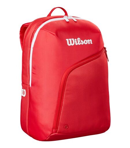 Travel to and from the courts with gear organized and accessories on hand. The Tour Red Padel Backpack provides versatility and protection for equipment, fashioned in Wilson's iconic red color. It features two large main compartments, one with Thermofoil lining to protect equipment from extreme temperatures. A zip accessory pocket in the front is the perfect spot for storing smaller items and valuables. Made from durable polyester, the bag offers two ways to carry it: either by hand with a top grab handle or using the padded shoulder straps. ...