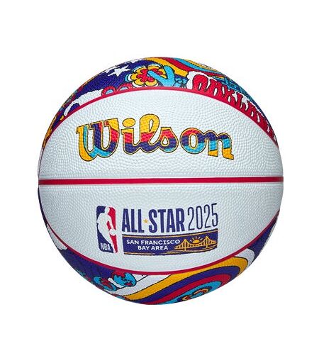 All-Star dreams begin on the playground. Designed for students of the game, the NBA All-Star Mini Basketball is just right for young athletes with smaller hands. It has an all-surface cover, so kids can play anywhere. The design draws inspiration from San Francisco Bay Area, the host of the 2025 event.SAN FRANCISCO BAY AREA ALL-STAR THEME: Pays tribute to San Francisco Bay Area, the 2025 All-Star host city.ALL SURFACE COVER: A durable all-surface cover makes this ball suitable for play on any court surface.AIR RETENTION: Inflation retention lining creates longer lasting air retention.DESIGNED FOR YOUTH PLAY: Ideal for younger athletes with smaller hands.NBA OFFICIAL: Wilson is the official basketball of the NBA. This ball features official NBA branding coupled with the iconic Wilson script. ...