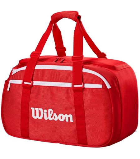Made in majestic red, Wilson's most iconic color, the Super Tour Red Small Duffle is ideally suited for avid players who need extra carrying capacity for extra gear and shoes. A perfect tournament travel companion to one of the Super Tour Red racket bags, it's also a great alternative for practice sessions, when players prefer to travel light to the courts. In addition to the dedicated shoe compartment and side pocket for smaller items, the duffle has a new separate compartment designed for a tennis racket. Padded carry handles make it comfortable and easy to haul. ...