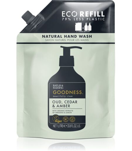 Baylis & Harding Goodness Oud, Cedar & Amber sapone liquido naturale mani REFILL 1000 ml