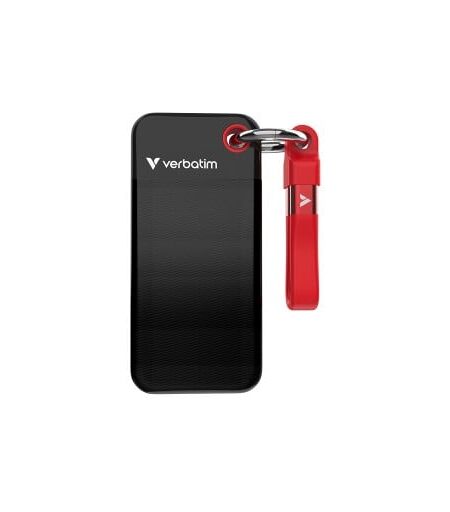 Verbatim Pocket SSD 2 TB, Externe SSD (schwarz/rot, USB-C 3.2 Gen 2 (10 Gbit/s), mit Schlsselring und Kabelhalter) (32196)