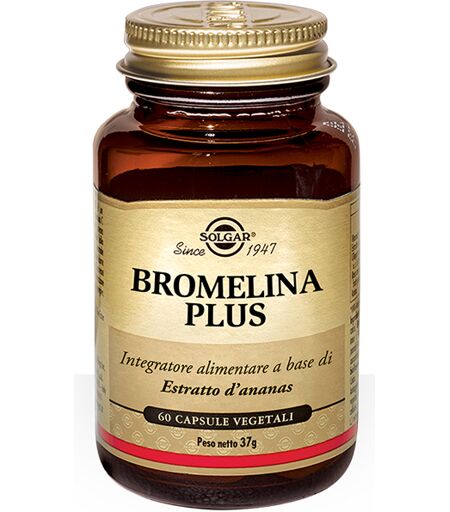 BROMELINA PLUS Descrizione Integratore alimentare a base di estratto di Ananas (Ananas comosus L. Merr., stipiti) titolato in Bromelina. L'Ananas è indicato per sostenere la funzione digestiva, il drenaggio dei liquidi corporei (pesantezza delle gambe) e la funzionalità del microcircolo. Inoltre contribuisce a contrastare gli inestetismi della cellulite. Ingredienti Ananas [Ananas comosus (L.) Merr.] estratto standardizzato di stipiti (60% bromelina); agenti di carica: maltodestrine, cellulosa microcristallina; agente di rivestimento: idrossipropilmetilcellulosa; addensante: carbossimetilcellulosa sodica reticolata; agente antiagglomerante: biossido di silicio; correttore di acidità: acido citrico; emulsionante: lecitina di soia. Caratteristiche nutrizionali Valori mediPer 2 capsule vegetali Ananas estratto standardizzato di stipiti-che fornisce: Bromelina (1.000 GDU*)500 mg300 mg *GDU: Unità di Dissoluzione della Gelatina. Modalità d'uso Deglutire 2 capsule vegetali al giorno, con acqua, preferibilmente al pasto. Avvertenze Non superare la dose giornaliera raccomandata. Tenere fuori dalla portata dei bambini al di sotto dei 3 anni. Gli integratori non vanno intesi come sostituto di una dieta variata, equilibrata e di un sano stile di vita. Conservazione Conservare in luogo fresco e asciutto. Validità a confezionamento integro: 36 mesi. Formato Barattolo da 60 capsule vegetali. Peso netto: 37 g. Cod. 80938 ...
