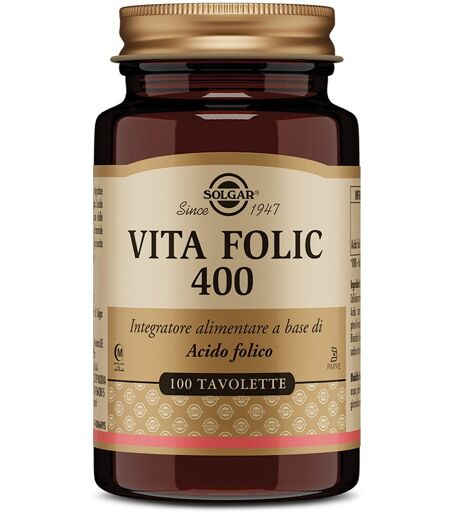 Gli integratori non sostituiscono un’alimentazione equilibrata e variegata e uno stile di vita sano. L’acido folico interviene nel processo di divisione delle cellule: essendo implicato come cofattore nella formazione del Dna, entra in gioco ogni volta che una cellula si divide. Questa sua funzione risulta di interesse in modo particolare a livello dei tessuti in rapida rigenerazione. L’assunzione supplementare di folato è importante soprattutto nelle donne che desiderano una gravidanza o già incinte perché incrementa i livelli materni di folati. Bassi livelli di folati in gravidanza sono un fattore di rischio nello sviluppo di difetti del tubo neurale nel feto. Il folato contribuisce inoltre alla normale sintesi degli aminoacidi e alla crescita dei tessuti materni in gravidanza. Il folato concorre inoltre in qualsiasi soggetto alla riduzione di stanchezza ed affaticamento, sostenendo anche una fisiologica formazione e maturazione delle cellule del sangue. L’acido folico interviene come sostegno per una normale funzione del sistema immunitario e per un normale metabolismo dell’omocisteina; molti studi segnalano che condizioni di elevata concentrazione ematica di omocisteina siano da considerarsi come un possibile fattore di rischio cardiovascolare. Il folato contribuisce inoltre alla normale funzione psicologica. Ingredienti: Agenti di carica: Calcio fosfato dibasico, Cellulosa microcristallina; Agente antiagglomerante: Acido stearico vegetale; Acido folico (acido pteroil-monoglutammico); Agente antiagglomerante: Biossido di silicio; Addensante: carbossimetilcellulosa sodica reticolata. Analisi media Per 1 tavoletta *Vnr% Acido folico (acido pteroilmonoglutammico) 400 mcg 200 *Vnr = Valori Nutritivi di Riferimento Modo d'uso: Deglutire 1 tavoletta al giorno, con acqua, preferibilmente al pasto. Avvertenze: Non superare la dose giornaliera raccomandata. Tenere fuori dalla portata dei bambini al di sotto dei tre anni. Conservazione: Conservare in un luogo fresco e asciutto, lontano dalla luce. Si prega di fare riferimento, se necessario, ad ulteriori istruzioni riportate sulla confezione. Contenuto: 100 tavolette = 26 g Produttore: Solgar Italia Multinutrient S.p.A. Via Prima Strada, 23 int. 3 35129 Padova Italia ...