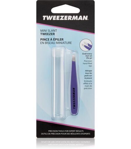 Tweezerman Mini Slant pinzetta con estremità oblique mini con un cofanetto da viaggio Lavender 1 pz