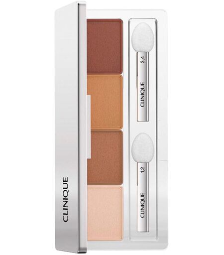 Ombretto setoso e a lunga durata per un colore ricco e costruibile in quattro tonalità complementari. Crea una varietà di look, da quelli naturali a quelli drammatici, con quattro tonalità che possono essere indossate da sole o stratificate. Offre un colore ricco e costruibile che dura tutto il giorno senza appannarsi o sbiadire. La formula in polvere setosa si fonde dolcemente sulle palpebre e si applica senza problemi. La confezione a specchio contiene istruzioni illustrate e due applicatori a spugnetta. Testato oftalmologicamente, è adatto anche agli occhi più sensibili e ai portatori di lenti a contatto. Applicazione: utilizzare una punta di spugna dell'applicatore per applicare una tonalità di colore su tutta la palpebra, dall'attaccatura delle ciglia all'osso sopraccigliare. Utilizzare l'altro lato dell'applicatore in spugna per creare una dimensione con la tonalità complementare. Applicare il colore nella piega e/o lungo la linea delle ciglia e sfumare. Per un'applicazione più dettagliata, scegliere un pennello specifico della collezione di pennelli Clinique Makeup. Rimuovere il colore con lo struccante Clinique preferito. ...