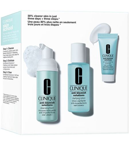 ANTI-BLEMISH SOLUTIONS 3-STEP SKIN CARE SYSTEM ESTUCHE. Set di cosmetici per il viso. Tipo di Pelle: Mista, Grassa, Con acne. Testura: Líquido. Tendenze: Ácido salicílico ...