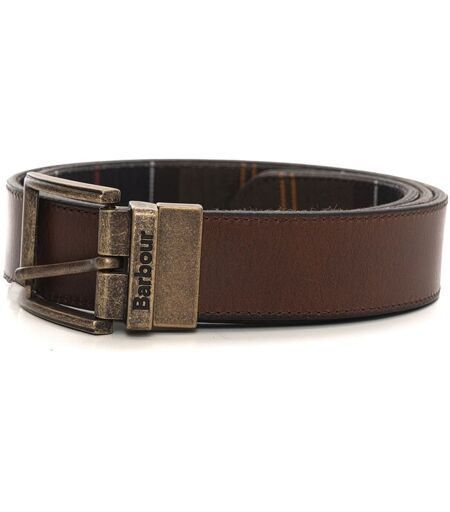 Cintura in pelle, reversibile, disegno tartan, fibbia bronzata, effetto vintage, logata, composizione: 100% pelle, 65% poliestere, 35% cotone, linea: BARBOUR. ...