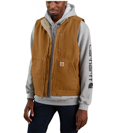 Carhartt Gilet Washed Duck Lined Mock Neck Brown L