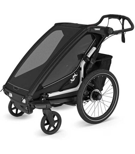 Thule Chariot Sport 1: il rimorchio per bici e passeggino per bambini per tutti i terreniSperimenta una versatilità e prestazioni senza pari con Thule Chariot Sport 1, un rimorchio per bici e passeggino di alta qualità progettato per le famiglie attive che non scendono a compromessi. Sia che tu stia intraprendendo una piacevole pedalata, conquistando sentieri impegnativi o godendoti una corsa rinfrescante, Sport 1 si adatta perfettamente alle tue esigenze, offrendo una guida sicura e confortevole per il tuo piccolo.Questo modello top di gamma vanta una gamma di caratteristiche che danno la priorità al benessere del tuo bambino e alla tua tranquillità:Comfort e sicurezza senza pari:Abitacolo climatizzato: mantieni il tuo bambino a suo agio in qualsiasi condizione atmosferica con le sospensioni regolabili, il sedile reclinabile e i finestrini rimovibili che ottimizzano la ventilazione e il controllo della temperatura.Sistema Thule VersaWing: passa senza sforzo da un´attività all´altra grazie al sistema di conversione rapido e semplice, che ti consente di passare dalla bicicletta alla passeggiata in pochi secondi.Caratteristiche di sicurezza avanzate: stai tranquillo sapendo che tuo figlio è protetto dal telaio in alluminio rinforzato, dall´imbracatura di sicurezza a 5 punti e dalla bandiera di sicurezza inclusa per una maggiore visibilità.Prestazioni e versatilità per ogni avventura:Design leggero e aerodinamico: goditi una guida fluida e senza sforzo, anche su terreni difficili, grazie al telaio in alluminio leggero e al design aerodinamico.Manubrio regolabile: personalizza l´altezza del manubrio per un comfort e un controllo ottimali, sia che tu stia andando in bicicletta o a passeggio.Chiusura compatta: Sport 1 si ripiega in modo compatto per riporlo e trasportarlo facilmente, il che lo rende ideale per le famiglie in movimento.Specifiche tecniche:Capacità di peso: 75 libbreDimensioni piegato: 34.3 L x 25.2 L x 13 APeso: 28.7 libbreCaratteristiche di sicurezza: imbracatura a 5 punti, materiali riflettenti, bandiera di sicurezzaRuote: ruote posteriori da 20, ruota anteriore per passeggino da 6Sospensioni: Sì, sospensioni a balestra regolabiliCarrelli:Include un kit da passeggio per una facile conversione in passeggino.Thule Chariot Sport 1 è più di un semplice rimorchio per bici, è un investimento nello stile di vita attivo della tua famiglia. Vivi la libertà di esplorare insieme, sapendo che tuo figlio è al sicuro, a suo agio e si gode il viaggio. ...