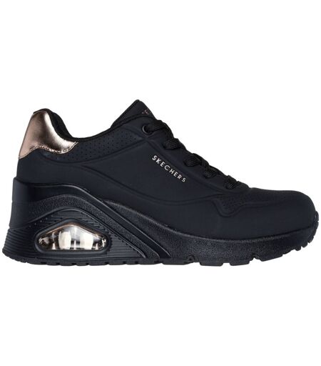 Le Skechers UNO Wedge - Hi Steps da donna combinano eleganza e comfort. Con tomaia in materiale tecnico nero, dettagli dorati, soletta Skechers Air-Cooled Memory Foam™ e intersuola Skech-Air® con zeppa interna, offrono uno stile moderno e slanciato perfetto per ogni occasione. ...
