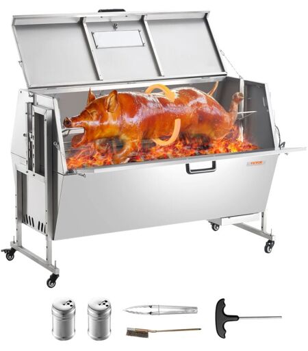 VEVOR Griglia per Agnello 130 kg Griglia per Barbecue per Maiale Capra, Girarrosto Commerciale in Acciaio Inossidabile con Motore Elettrico da 60 w con